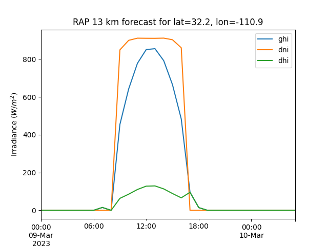 In [4]: from pvlib.forecast import GFS, NAM, NDFD, HRRR, RAP